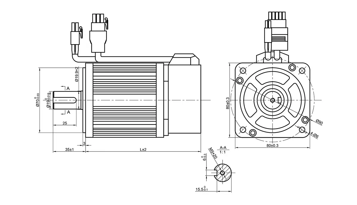 额定功率范围:0.4kW~1kW,额定转矩范围:1.27~4.0Nm,最高额定转速:3000rpm,适配220v~380v电压伺服驱动器,具有高响应\高精度\高防护\低转速波动\低温升\低振动噪音等特点,可根据客户要求配置17位\23位\25位编码器