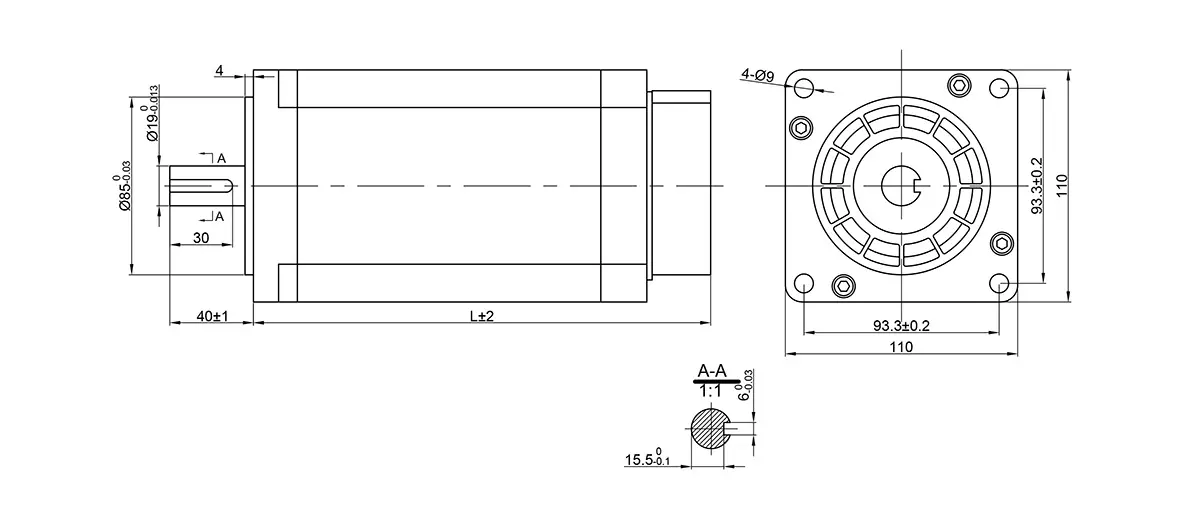 型号 | 步距角(*) | 机身长(L)(mm) | 保持转矩(N.m) | 额定电流(A/phase) | 电阻(Ω) | 电感(mH) | 转动惯量(gcm²) | 轴径(mm) | 轴伸(mm) | 重量(kg) |